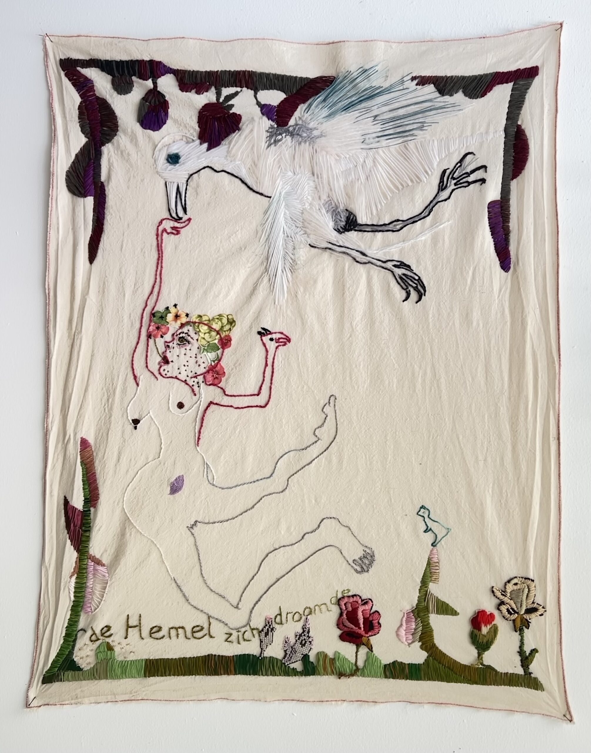 Marita Kratz - 'de Hemel zich droomde' - borduur:collagetechniek - ca 70 x 100 cm