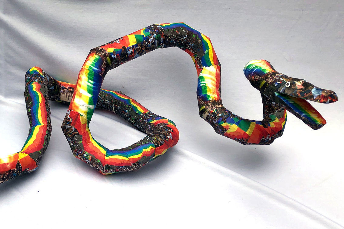 Ton Vriens - Ode aan lhbti+, papier en gekopieerd papier, ~100 x 40 x 35